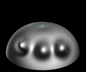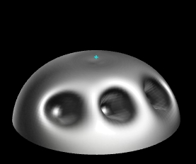 Here I have painted three dots on the model, they stick up towards the view direction they were painted in, eg: Painting in the front view will give bumps that stick straight forwards.